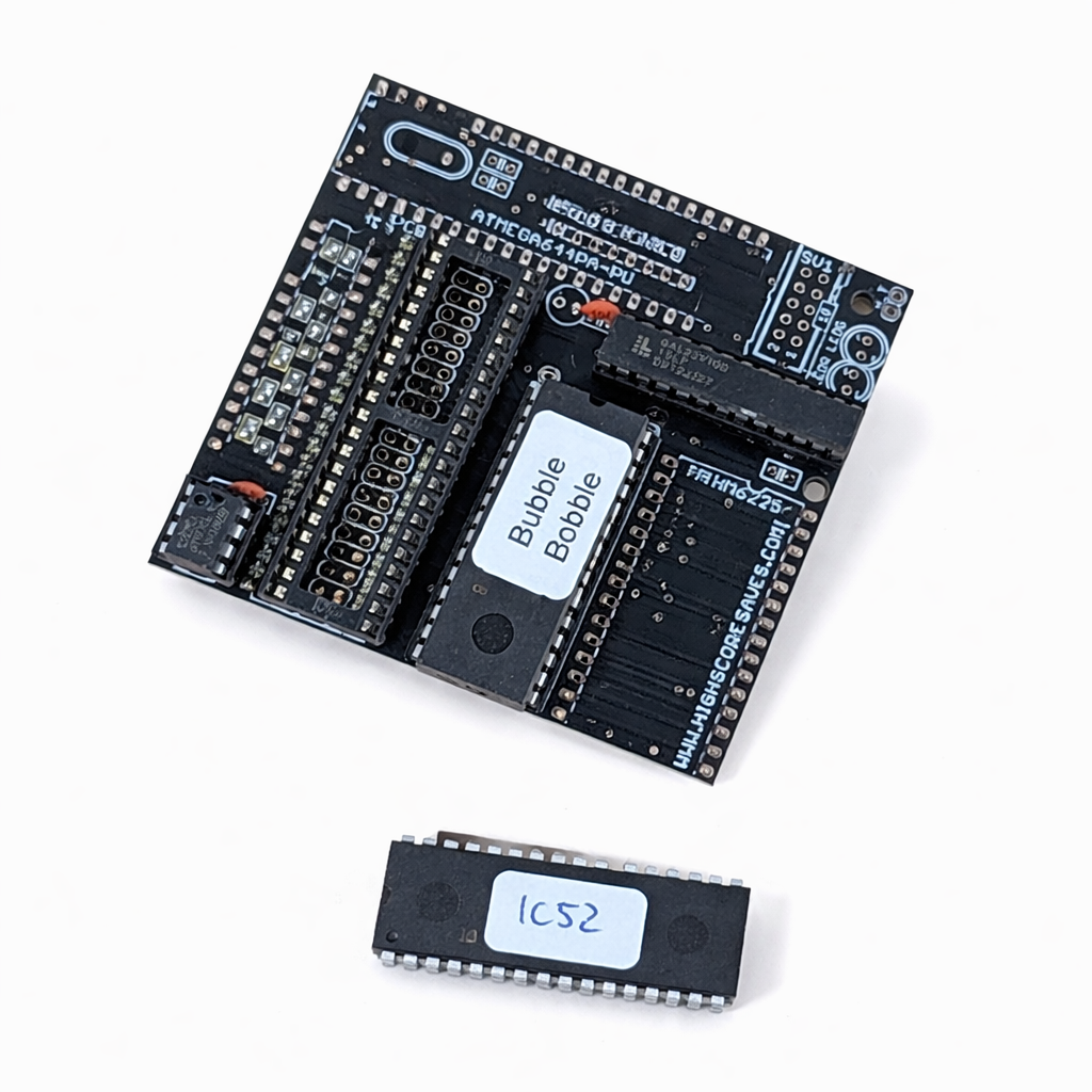 Customize Your Bomb Jack Free Play and High Score Save Kit Upgrade your original Bomb Jack arcade PCB with this Free Play and High Score Save Kit designed by HighScoreSaves for fast installation, stable score retention, authentic attract sounds, and menu driven configuration. This plug and play upgrade preserves the original Tehkan experience while adding modern convenience features that make gameplay smoother and maintenance easier. Build your kit exactly how you want it. Choose a Wi-Fi Enabled Kit or a Standard Save Kit. You can also add a processor and/or a 40-pin socket—optional but recommended for easy installation. Learn More About This Kit Click a button to view details, tips, or the installation guide. Main Features Easy install: No soldering, board modifications, or special wiring—plug in and go. Save your scores forever: Uses serial EEPROM (not failure-prone NVRAM or batteries). High Score Save: Saves the Top 10 scores on screen. Real attract sounds: Not just music—gameplay sounds too. Attract sounds: Set at 25%, 50%, or 100% of the attract screen rotation. Freeplay and Coin-Up: Play without coins or keep quarters/tokens enabled. Attract mode: Helps minimize screen burn by avoiding static screens. Menu-driven DIP settings: Change options on-screen—no cabinet pulling for DIP switches. ROM Saver: Optionally remove original program ROMs to save power. Cabinet compatibility: Works in Upright and Cocktail cabinets. Additional Features Backup and Restore: Back up high scores and restore later—ideal before or after game-room parties. Fast boot / Self-test: Quick startup; self-test accessible via the main menu or by setting all PCB DIP switches to OFF. Optional Features View Bomb Jack High Scores Want to take your scores beyond the cabinet? Before adding this kit to your cart, simply use the dropdown labeled “Make this WiFi Enabled to upload your scores?” and select Yes or No. Choosing Wi-Fi enables secure online score uploads so you can compare your performance globally, within your country, or even against players in your own game room. All Global High Scores Important Installation Notes Socketed Z80 required: If your Z80 isn’t socketed, install a 40-pin socket for the kit to work. Read the Bomb Jack Free Play and High Score Save Kit Installation Guide / Manual (PDF) before setup. Just the FAQ's How many scores are saved?The kit saves the Top 10 scores on screen. Does it support Freeplay and coin operation?Yes. Run in Freeplay or keep coin-up enabled—your choice. What are “real attract sounds”?Attract mode can play gameplay sound effects for authentic demos. Can I adjust attract sounds?Yes. Set attract sounds to 25%, 50%, or 100%. Can I change DIP settings without opening the cabinet?Yes — use the menu-driven DIP settings. How do I access self-test?From the main menu or by setting all PCB DIP switches to OFF. What is ROM Saver?The kit runs the game and reduces power usage when original ROMs are removed. Where can I download the Installation Guide? Download the Bomb Jack Free Play and High Score Save Kit Setup Instructions / Installation Manual (PDF) . Do I need a socketed CPU?Yes. A socketed Z80 is required. Resources Bomb Jack Free Play and High Score Save Kit — Installation Guide / Manual (PDF) HighScoreSaves YouTube Channel — Installation Tips HighScoreSaves Facebook Page HighScoreSaves eBay Store