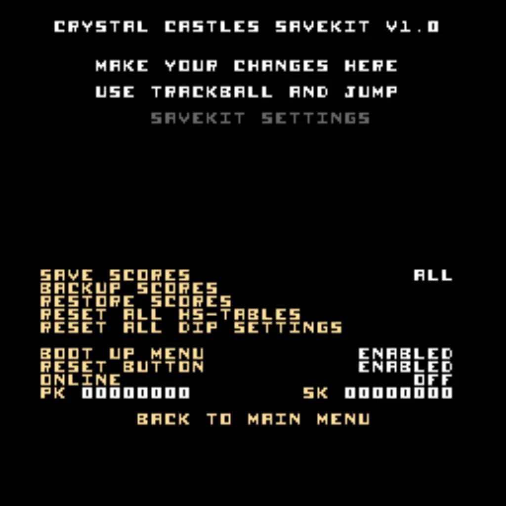 Crystal Castles Free Play and High Score Save Kit
