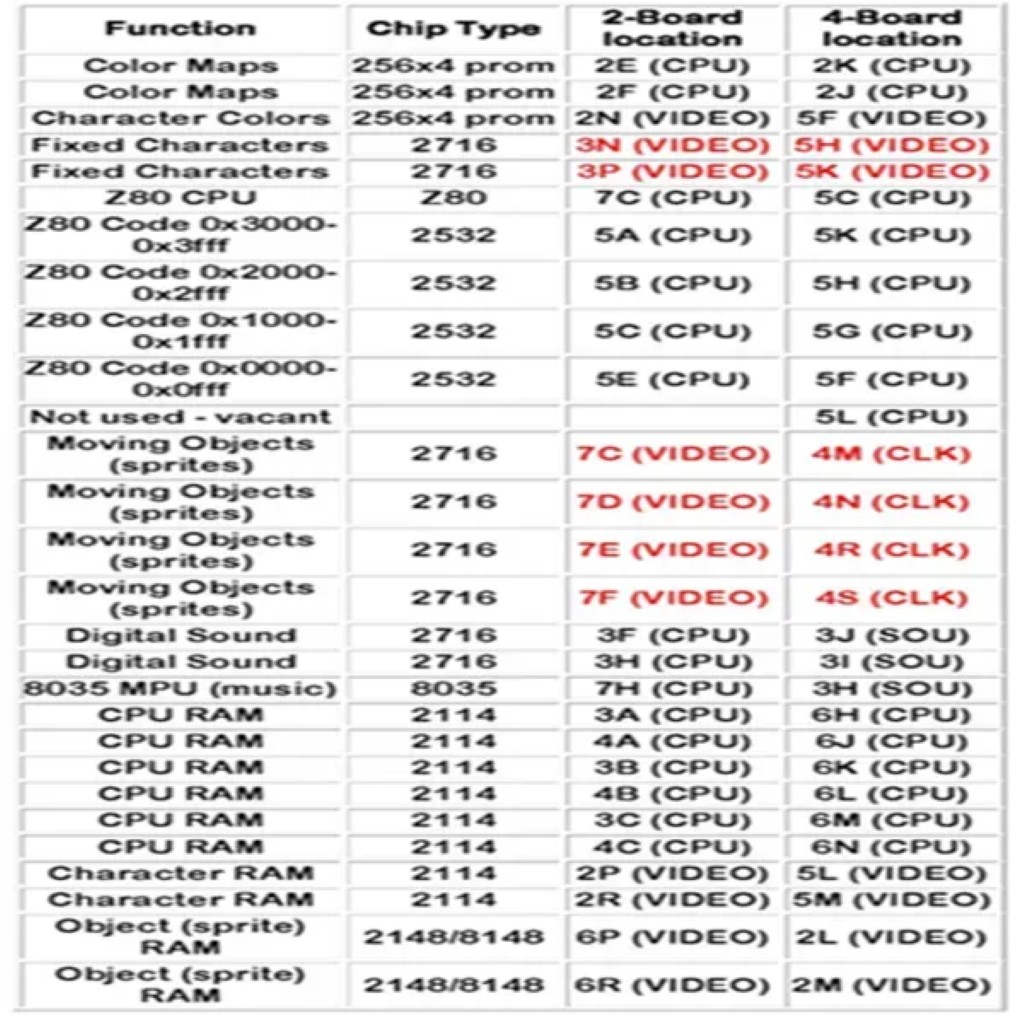 - Pauline graphics requirement: This kit requires 5 EPROMs to be changed on the video PCB for Pauline to work properly.