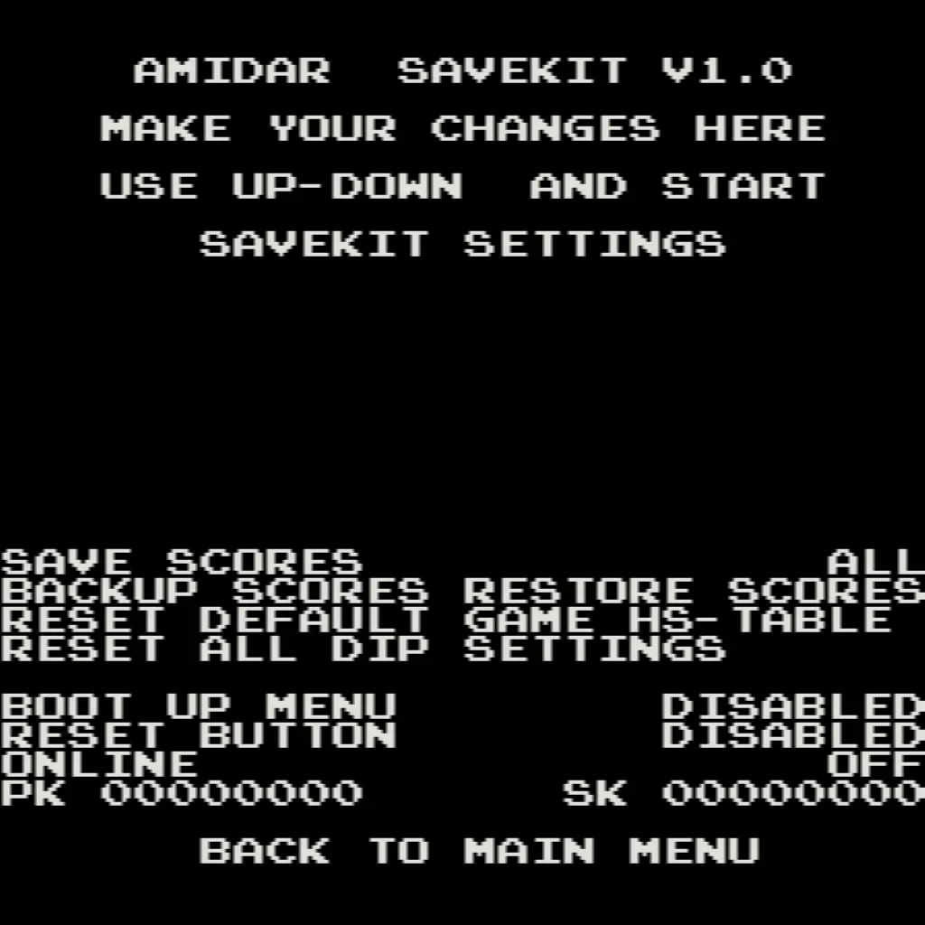 The kit saves the Top 10 scores, with multiple score tables depending on lives selected.