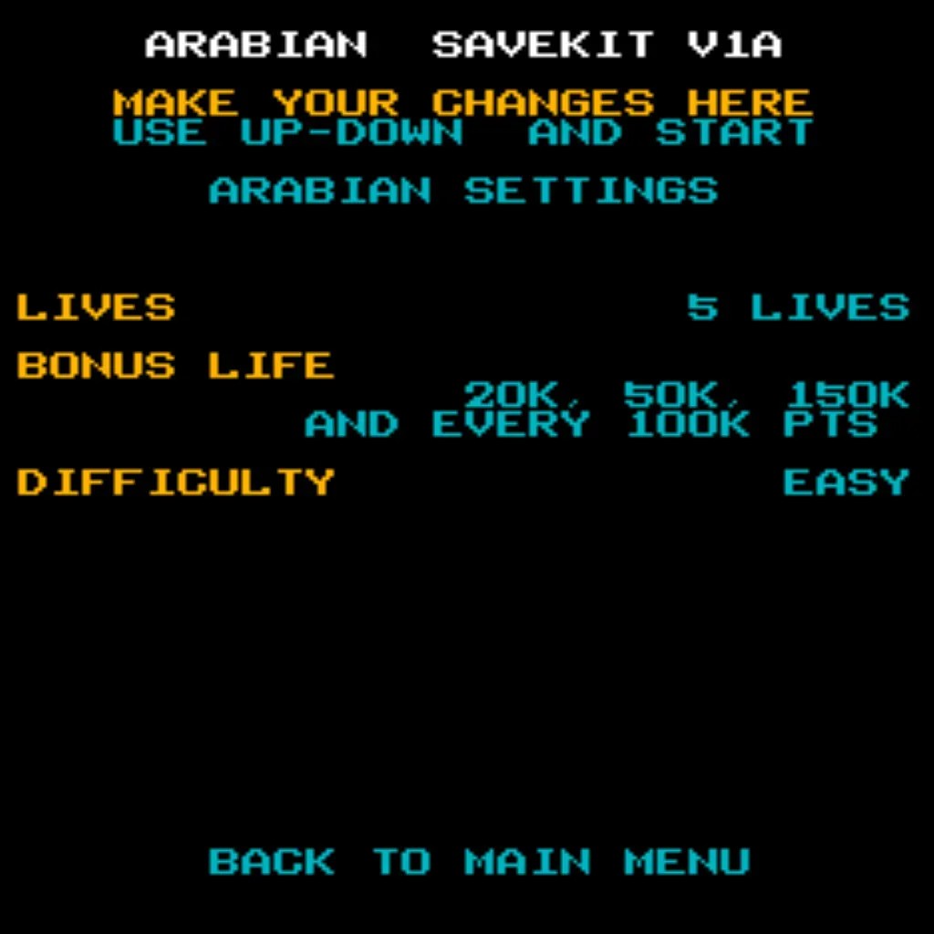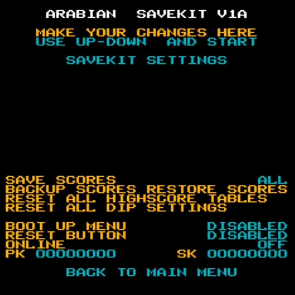 Designed for original Arabian arcade PCBs, this kit permanently saves high scores, enables free play, and adds modern reliability without changing gameplay.