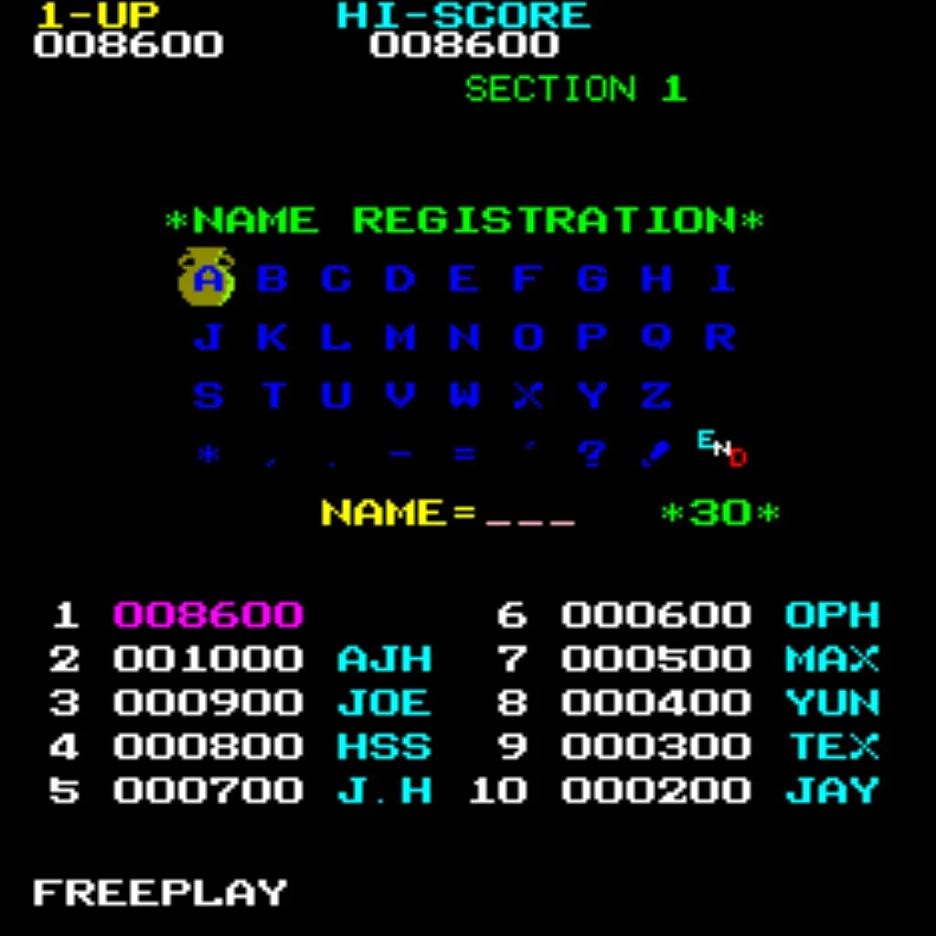 - High score tracking: Saves the Top 10 scores, with 1 dedicated score table.