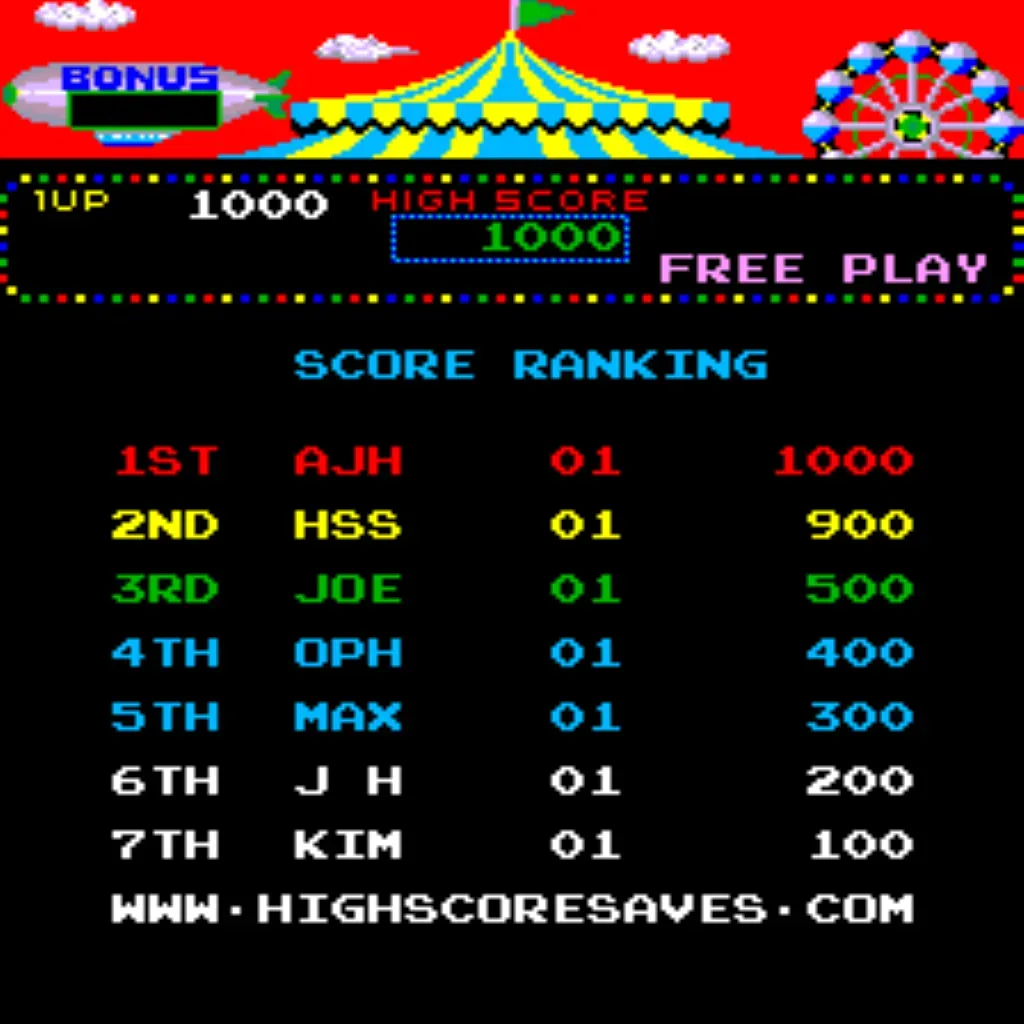 Circus Charlie Free Play and High Score Save Kit