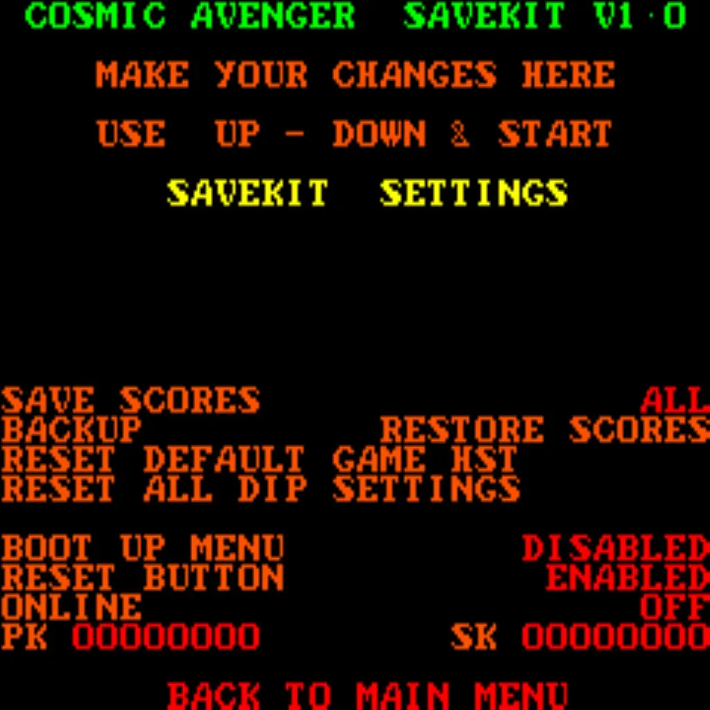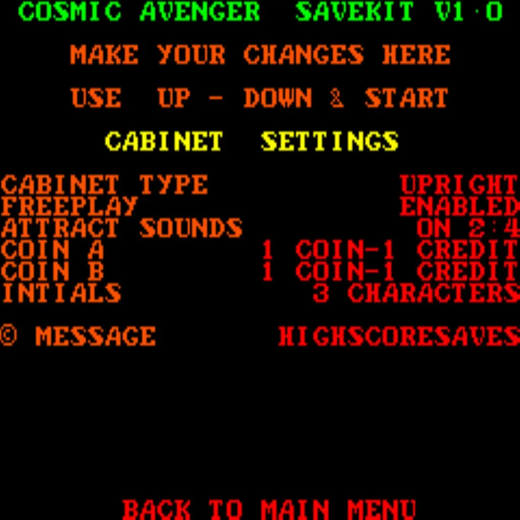 Cosmic Avenger Free Play and High Score Save Kit
