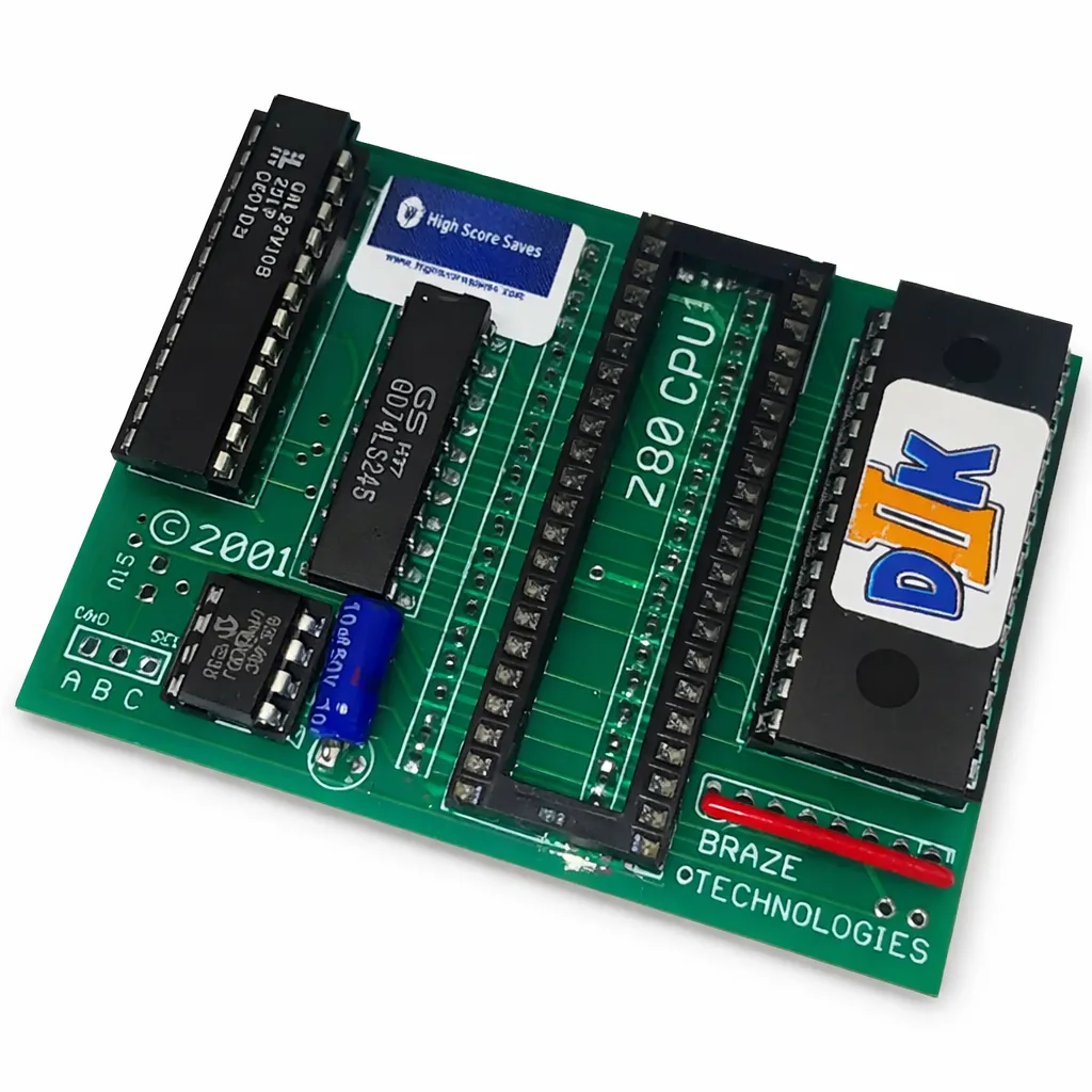 Donkey Kong Rearranged Multigame Free Play and High Score Save Kit This is the newest Donkey Kong kit on the scene: high-score saves, Free Play, and attract sounds—designed for the 21st century. This is NOT Double Donkey Kong. Install on a Donkey Kong or Donkey Kong Jr. board set (selected in the drop-downs) and play Donkey Kong, Donkey Kong Jr., Donkey Kong 3, D2K: Jumpman Returns plus the Rearranged Edition and unlockable editions on your PCB. Adding the Remix Collection gives you four more game versions. No special wiring or switches required. Enter the Modern Menu by holding P1 for 4 seconds to access the Game Select Menu instantly. Customize Your Donkey Kong Rearranged Multigame Free Play and High Score Save Kit Build your kit exactly how you want it. Choose a Wi-Fi Enabled Kit or a Standard Save Kit. You can also add a processor and/or a 40-pin socket—optional but recommended for easy installation. Learn More About This Kit Click a button to view details, tips, or the installation guide. In the drop-down selections above, choose which PCB to install the kit on (kits differ by selection), add the 4-game Remix Collection, and enable Wi-Fi to upload your scores to your personal webpage. Installation Guides - 3DK Install Guide (DK PCB) 3DK Install Guide (on a Donkey Kong PCB) 3DKJr Install Guide (DKJr PCB) 3DKJr Install Guide (on a Donkey Kong Jr. PCB) Game List Donkey Kong Pauline Donkey Kong Donkey Kong Junior Donkey Kong 3 D2K: Jumpman Returns Pauline D2K: Jumpman Returns Donkey Kong (Japan ROMs) Donkey Kong Jr. (Japan ROMs) Practice Levels Rearranged Edition – an intertwined game-level lineup Optional Remix Collection Donkey Kong Remix Donkey Kong Jr. Remix Donkey Kong Christmas Remix Donkey Kong Spooky Remix Unlockable Levels Drunken Master Edition – 2× points & reversed controls Black Hammer Edition - When the lights go out... Wild Barrel Edition - Every barrel thrown is WILD Miner 2049er Edition - Play a vision on the old classic! Builders Edition - The screen builds as you progress FHMC Edition – Faster, Harder, More Challenging Rearranged lineup Personal Edition – Build your own Rearranged version Main Features No soldering required – plug in and go. Modern Menu – sleek game select system. High Score Save – Top 5 per game. Extended scoring – supports 1M+ across all games. Free Play + Coin Up Attract sounds – 25%, 50%, 100%. DIP settings in menu Screen saver ROM Saver Practice Mode Sound Expansion Module Kill-screen toggle Important Socketed Z80 required This kit comes with a z80 installed on main daughter card DK or DKJr boards only (no DK3 support) 2-board stack only (no 4-board) Read the correct installation guide based on your PCB Just the FAQ's Do I need to send in my PCB? No—install yourself in ~15 minutes. Does the 3DK Multigame kit sound correct? Yes—multiple audio profiles. Does this run on DK and DKJr PCBs? Yes—select the correct board in the product options. Will it work on a 4-board DK stack? No—2-board stack only. Where can I download the Installation Guide? 3DK Install Guide (DK) 3DKJr Install Guide (DKJr) Resources 3DK Install Guide (Donkey Kong) — PDF 3DKJr Install Guide (Donkey Kong Jr.) — PDF HighScoreSaves eBay Store HighScoreSaves YouTube Channel HighScoreSaves Facebook Page