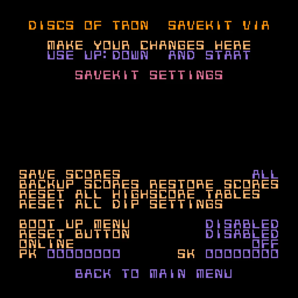 The kit saves the Top 10 high scores for Discs of Tron.