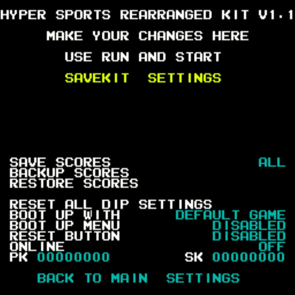 - High Score Save – Top 10 (T&F), Top 13 (Hyper Sports), Top 23 (Rearranged).