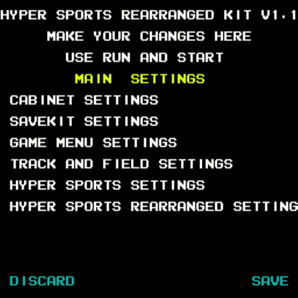 This is one of the most fun kits you can add to your arcade. Playing Rearranged with family and friends is so cool. Trying to make through the 400m without getting too tired is a challenge. The kit has the usual options of separate high score save and free play plus a menu to select individual events so you can practice levels that you need to work on. This kit is a blast.