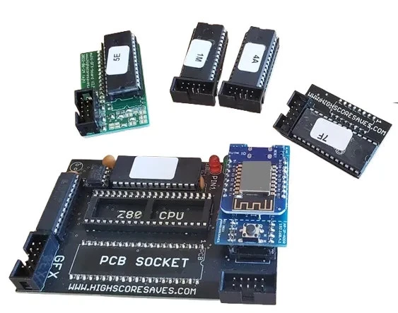 Customize Your Pacman Free Play and High Score Save Kit Build your kit exactly how you want it. Choose a Wi-Fi Enabled Kit or a Standard Save Kit. You can also add a processor and/or a 40-pin socket — optional but recommended for easy installation. Learn More About This Kit Click a button to view details, tips, or the installation guide. Features Easy install — No soldering, board mods, or special wiring. Plug in and go. Save your scores forever — Uses reliable serial EPROM (not NVRAM or batteries). High Score Save — Saves the Top 10 scores with initials. Attract Sounds — Choose 25%, 50%, or every attract screen. Freeplay — No more coins or opening the coin door. Coin Up — Still supports coins if desired. Attract Mode — Minimizes screen burn; no static screens. Menu-driven DIP settings — Change DIP switches without opening your game. ROM Saver — Optionally remove original program ROMs to save power. Cabinet support — Works in Upright and Cocktail cabinets. Additional Features Backup & Restore — Back up high scores and restore later (perfect before/after parties). Fast or Original versions — Play either mode. Extended scoring — Saves up to 9,999,990 points (7-digit saves) — no more rollovers. Separate high score tables — Distinct tables for Fast vs Original play. Stealth Mode — Choose which game the kit boots to. Kill Screen practice — Start at Level 255 (menu selectable). Important Ensure your Z80 is socketed. If not, install a 40-pin socket for the kit to work. Read the installation guide before you install — Pac-Man High Score Save Kit Installation Guide (PDF) .Program roms in row 6 MUST be removed with kit installed5E and 5F must be presentThis kit will work on a Pacman or Ms Pacman pcb. They're the same pcb, however, you will not use the Ms Pac Daughter card and ribbon cable Game List Pac-Man (Fast version) Pac-Man (Original/Slow version) FAQ Which game versions are included? Pac-Man Fast and Pac-Man Original/Slow. How many scores are saved? The kit saves the Top 10 scores with initials. Does it support Freeplay and coin operation? Yes. Freeplay can be enabled, and Coin Up is still supported. Are Fast and Original scores kept separate? Yes. There are separate high score tables for Fast and Original modes. Do I need to remove the original program ROMs? With ROM Saver you may remove the original program ROMs to reduce power/heat. What are the attract sound options? Set attract sounds to 25%, 50%, or 100% of rotations, or disable them. Will this work in my cabinet? Supports Upright and Cocktail cabinets. Can I practice the kill screen? Yes. Use the menu to start directly at Level 255 for practice. Do I need a socketed CPU? Yes. A socketed Z80 is required. Install a 40-pin socket if your board isn’t socketed. Where is the installation guide? Right here: Pac-Man High Score Save Kit Installation Guide (PDF) .