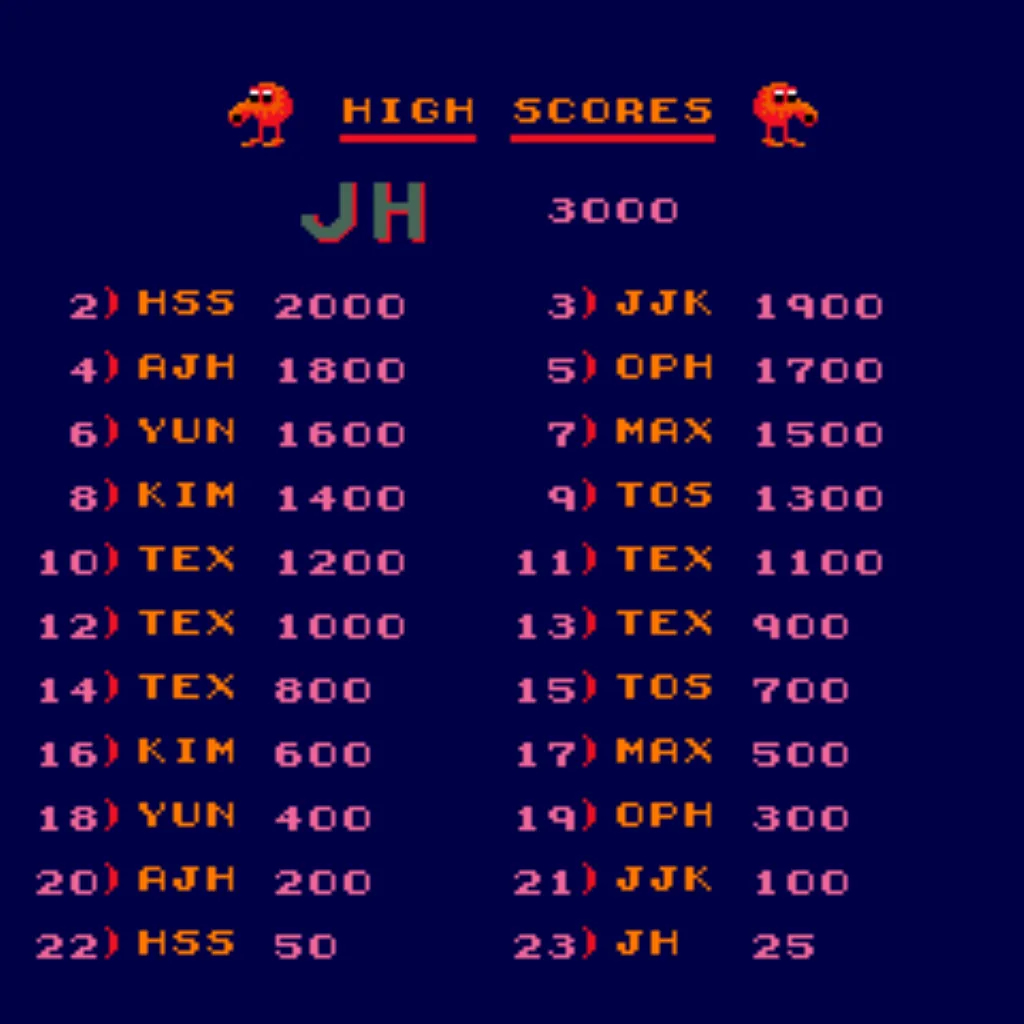 - Joystick initials entry: Use joystick Up for initials and level select.