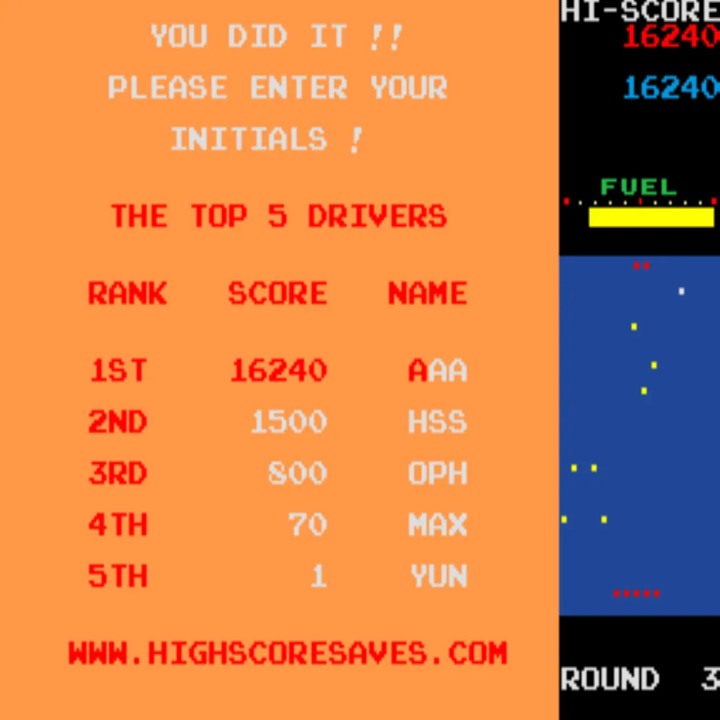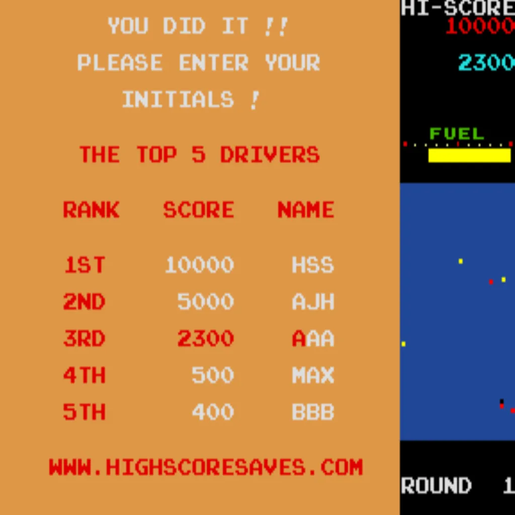 - High-score tables with initials: Save up to 16 combinations of tables (lives and bonus options).