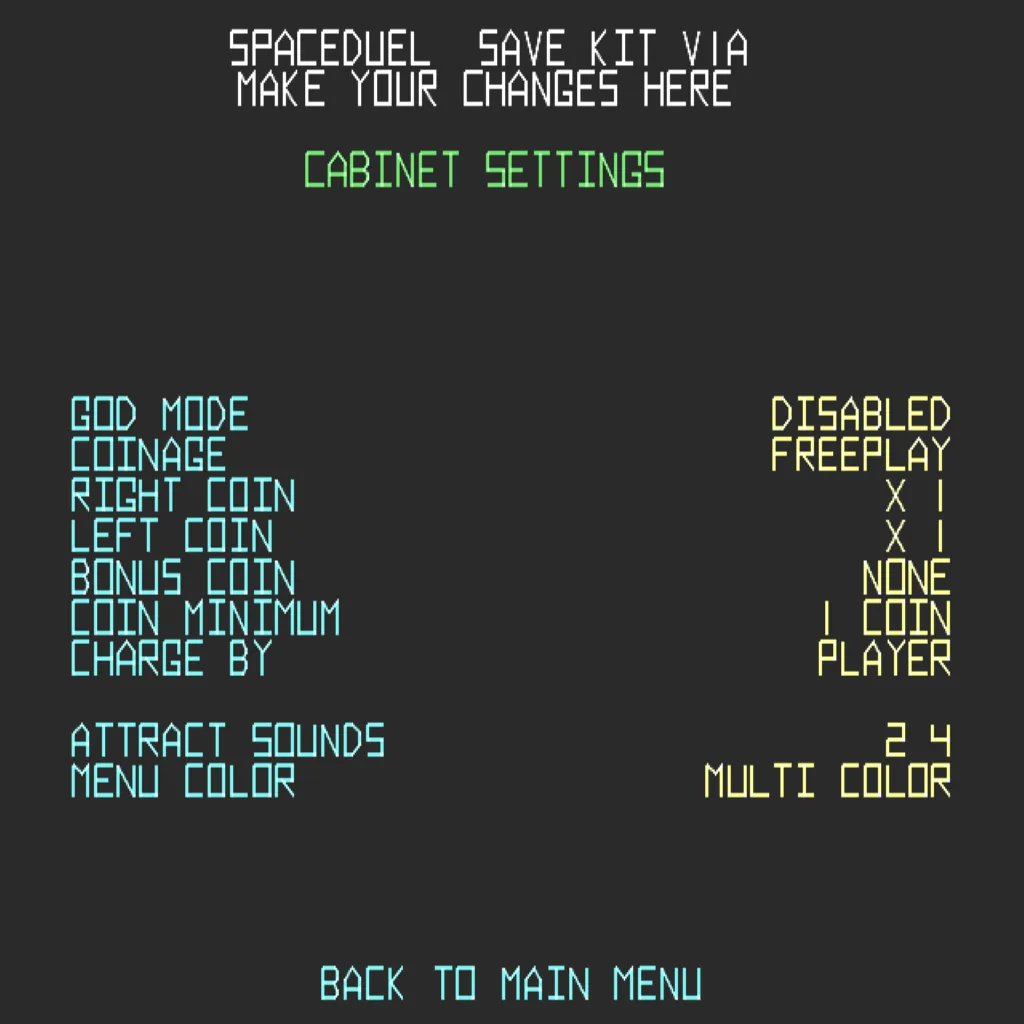 - Attract Sounds – Hear what you’ve been missing; set to 25%, 50%, or 100% of the attract rotation.